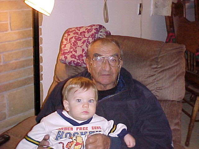Jacob with his Great Grandpa George December 2001